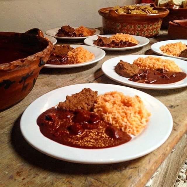 El Asado de Boda es un platillo típico producto de una mezcla de chiles secos con especias y chocolate, que conforman la salsa espesa que baña una porción de carne de puerco en trocitos.