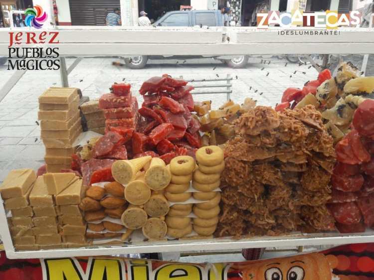En cada región es de ley adquirir los dulces tradicionales, ya que forman parte de la comida típica, en este caso Jerez se destaca por la venta de dulces de camote, calabaza, biznaga, chilacayote, mechonas hechas de coco, dulces de piña, guayaba, nuez cacahuate y dulces de leche.
